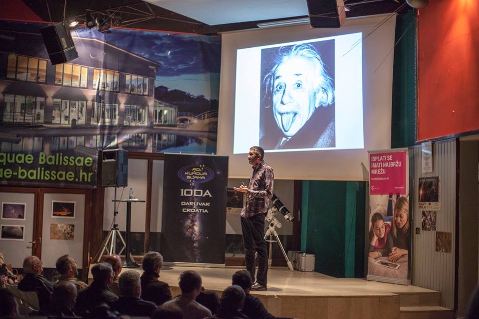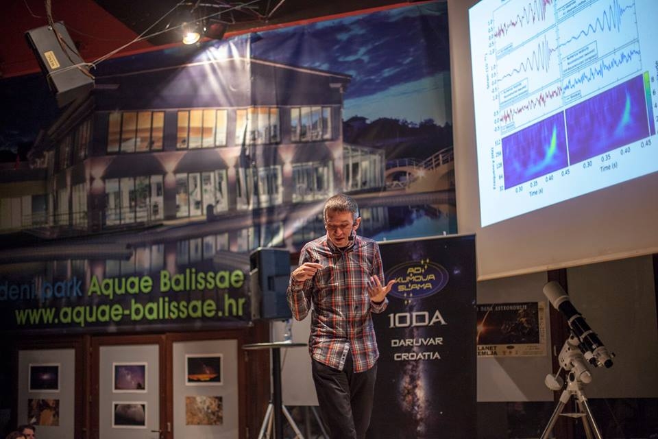 Predavanje je od 19 sati pod naslovom „Otkriće gravitacijskih valova – potpis kozmičkih monstruma držao docent dr.sci. Davor Horvatić, koji nam je na veoma inspirativan način objasnio zbog čega je to točno znanstvena zajednica „poludjela“ u zadnje vrijeme kada su na dva različita mjesta na Zemlji izmjerili isti pomak. Što su to gravitacijski valovi, na koji način su potvrdili Einsteinovu teoriju relativnosti i još mnogo toga smo saznali od Davora, a uz druženje nakon predavanja ga kao predavača unaprijed rezervirali i za sljedeću godinu.