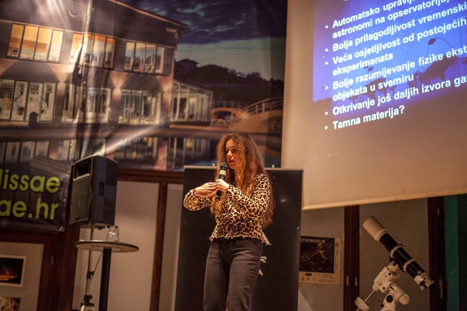 „Na putu ka najvećem svjetskom gama–opservatoriju“, kako se zvalo predavanje Dijane Dominis Prester, zainteresiralo je mnoge kojima je Dijana pričala o svom radu na gama teleskopima i o tome što je to uopće gama zračenje. Dijana nam je ispričala kako je prošle godine dobar dio vremena provela na radu u Japanu te kako je raditi sa znanstvenicima koji dolaze iz sasvim različitih kultura. Nakon predavanja čekao nas je domjenak sa predavačicom ali i ostalim gostima koje se; zahvaljujući našem Nenadu, uz gitaru i pjesmu otegnulo do dugo u noć.