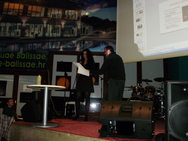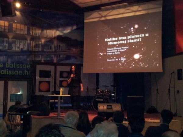 U 18 sati dočekali smo docenticu riječkog sveučilišta Dijanu Dominis Prester i supruga Predraga te smo ih odveli na našu izložbu.U 19 sati kao i svaki dan počelo je predavanje Dr. Dijane pod nazivom "Koliko planeta ima u Kumovoj slami?". Kao i svaki dan posjećenost je bila dobra a pažnja slušalaca na visini. Sigurno su svi bili zadovoljni što su nam nakon predavanja mnogi imali potrebu i reći.