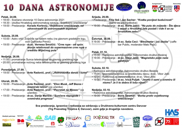 10 Dana astronomije se vraća nakon duže pauze a što smo sve za Vas pripremili ove godine pročitajte u slijedećem članku gdje predstavljamo ovogodišnji program događanja.